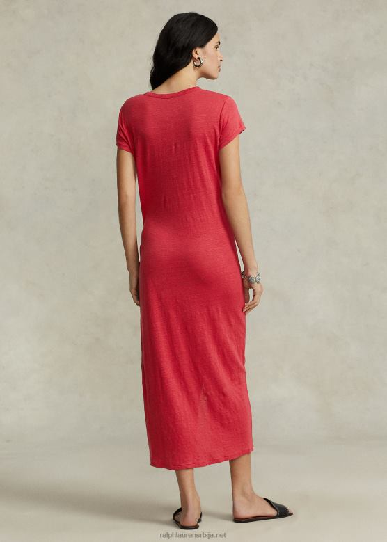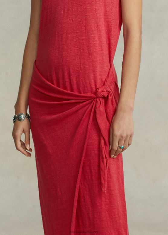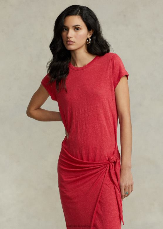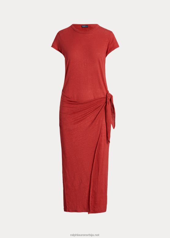 Жене Ralph Lauren ланена мајица са детаљима са краватом V2V442964 залазак сунца црвен