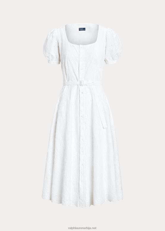 Жене Ralph Lauren ланена хаљина са ушицом извезена V2V442991 бео