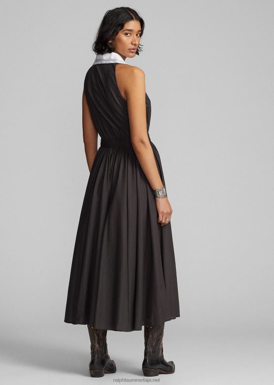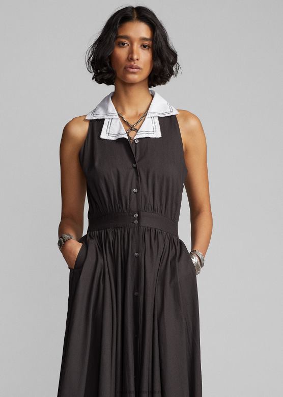 Жене Ralph Lauren памучна воиле хаљина са контрастном крагном V2V443620 црно бели