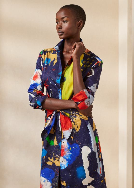 <п><п>г. Лоренина љубав према елегантној одећи за плажу, посебно саронгу, инспирација је иза Цхарлеи хаљине, на којој самовезујући струк инспирисан саронгом наглашава њену традиционалну силуету кошуље. Италијанске израде, ова хаљина је израђена од памучног сатена са одштампаним сезонским шареним мотивом, који је инспирисан модерном уметношћу и креативним простором сликарског атељеа. његова богата палета боја, која укључује тамноплаву, црвену и крем, везује се за извор инспирације за лето 2023: америчку ривијеру.<п>п>