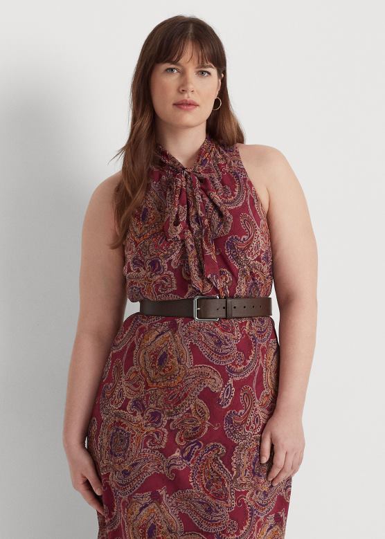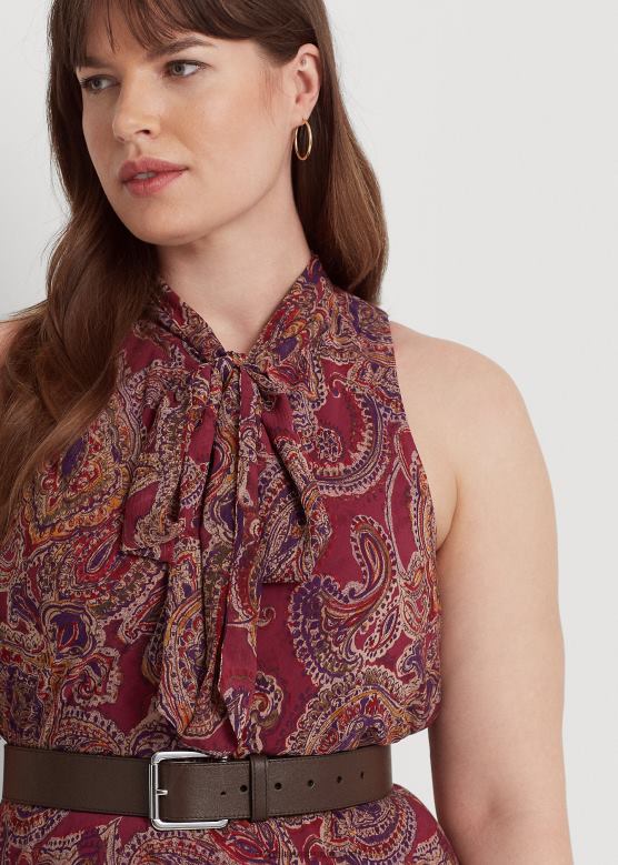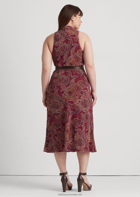 Жене Ralph Lauren пејсли цринкле жоржет хаљина са краватом V2V444497 бордо мулти