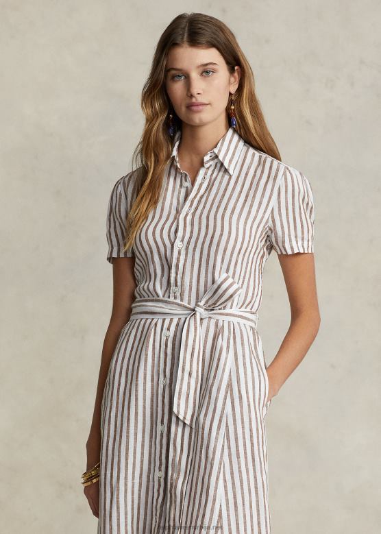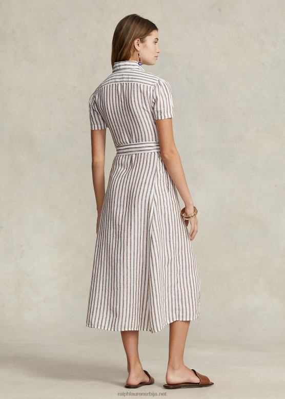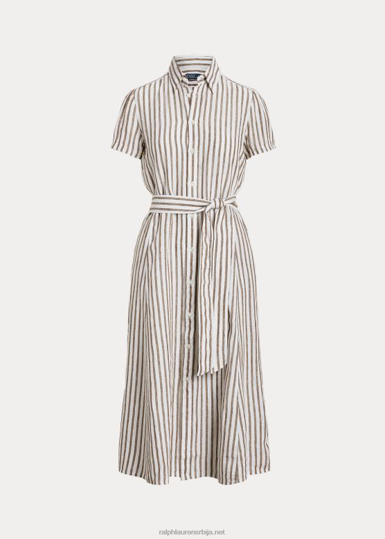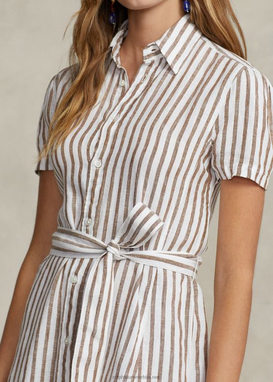 Жене Ralph Lauren пругаста ланена кошуља кратких рукава V2V442912 ловац браон