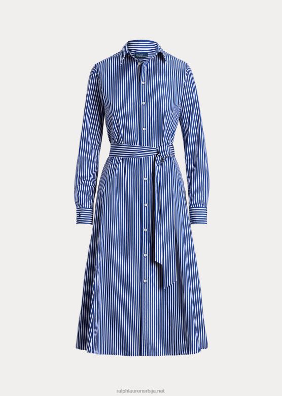 Жене Ralph Lauren пругаста памучна кошуља са појасом V2V449177 светло тамноплава/бела