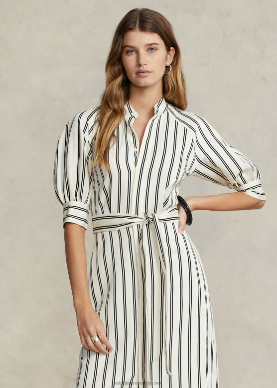 Жене Ralph Lauren пругаста хаљина од дуда од свиле V2V442973 крем/црна пруга