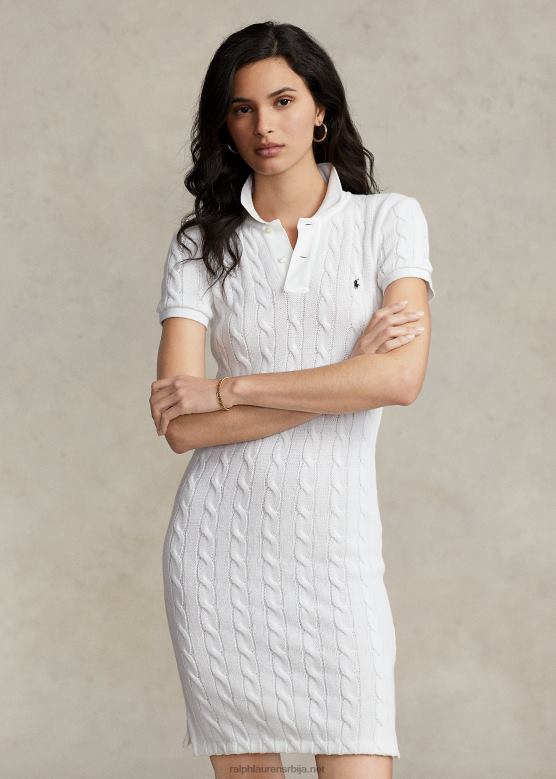 Жене Ralph Lauren скинни фит памучна поло хаљина V2V442953 бео