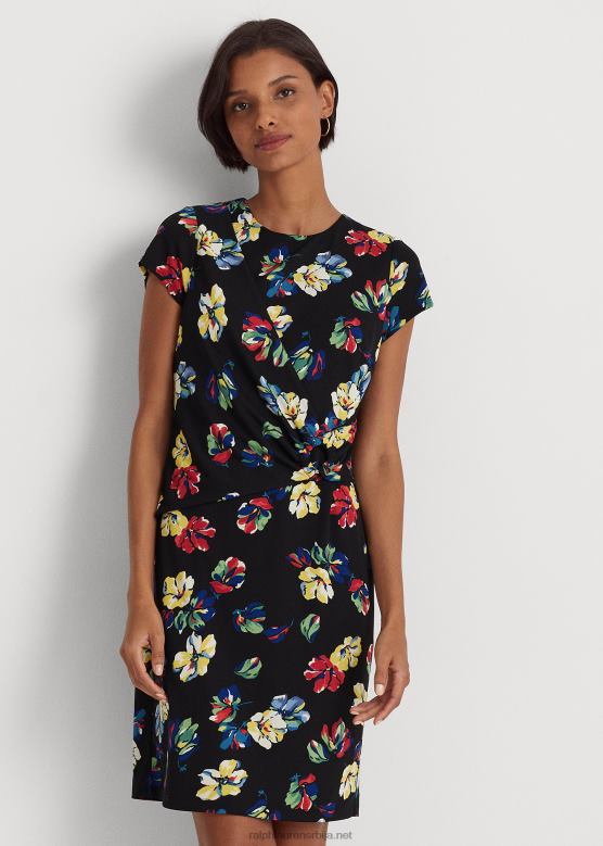 Жене Ralph Lauren хаљина кратких рукава од растезљивог дреса са цвећем V2V444354 црни мулти