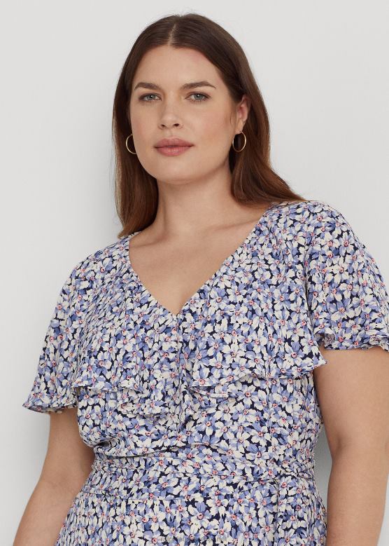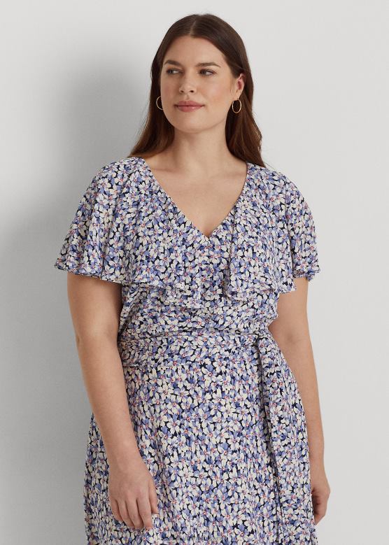 Жене Ralph Lauren хаљина од балон крепа са цветним ременом V2V444633 плава/крем/ружичаста