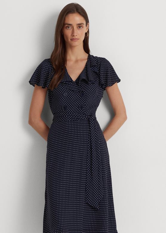 Жене Ralph Lauren хаљина од жоржета са каишем на точкице V2V449570
