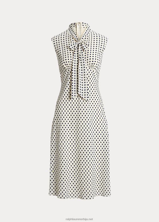Жене Ralph Lauren хаљина од жоржета са краватом и изрезом на точкице V2V444427 пергамент крем / морнарица