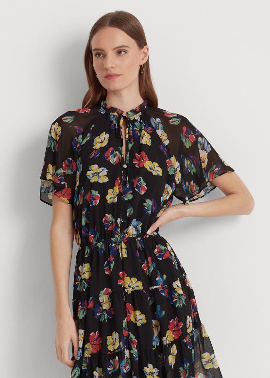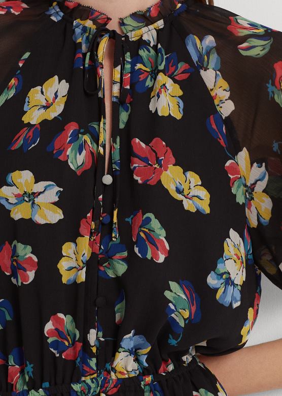 Жене Ralph Lauren хаљина од жоржета са набораним цветовима V2V443892 црни мулти