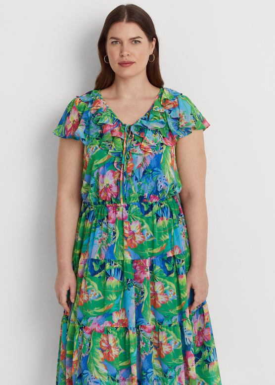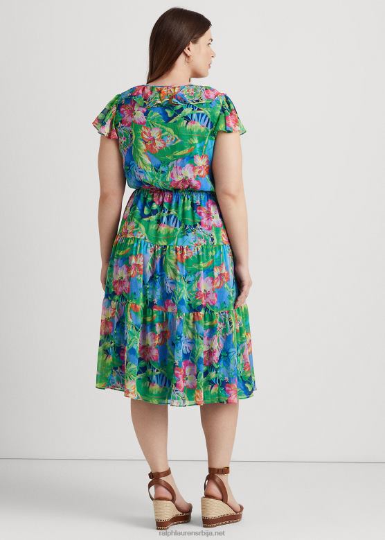 Жене Ralph Lauren хаљина од жоржета са цветним наборима V2V449482 зелено/плаво мулти