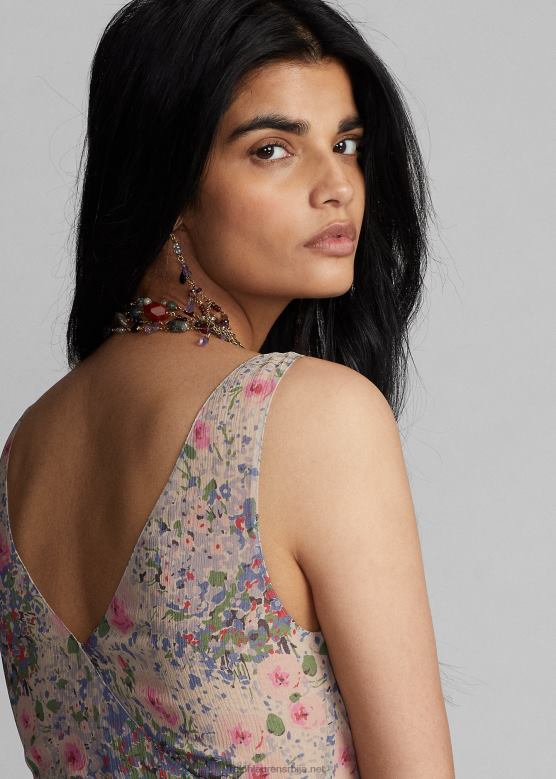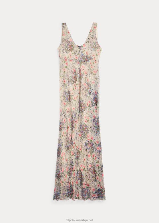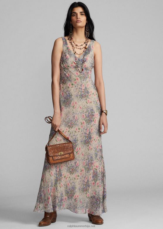Жене Ralph Lauren хаљина од свиленог шифона са набораним цветовима V2V443651 мулти/тан