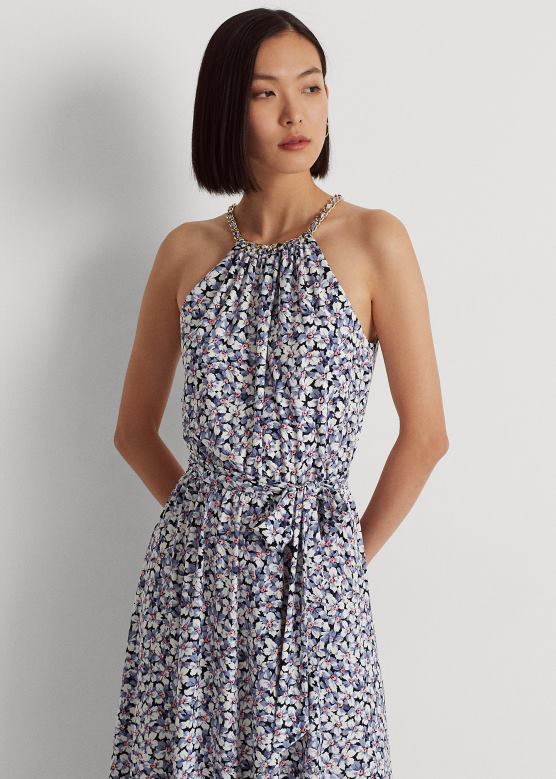 Жене Ralph Lauren хаљина од џерсија са цветним каишем V2V444101 плава/крем/ружичаста