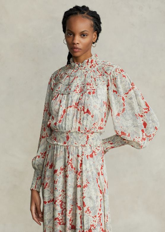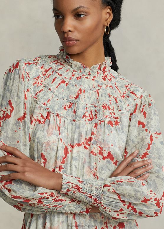 Жене Ralph Lauren цветна наборана хаљина од жоржета V2V443222 босиљак цвјетни