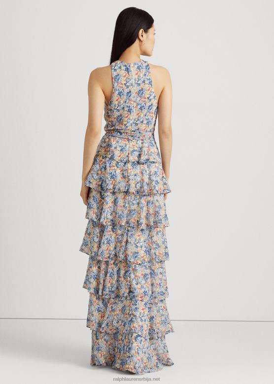 Жене Ralph Lauren цветна наборана хаљина од жоржета V2V443982 плаво/розе мулти