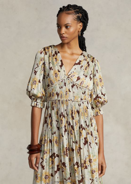 Жене Ralph Lauren цветна плисирана сатенска хаљина V2V443224 пролећни буттерцуп цветни