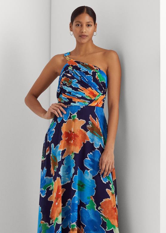 Жене Ralph Lauren цветна хаљина од жоржета на једно раме V2V449557 морнарица мулти