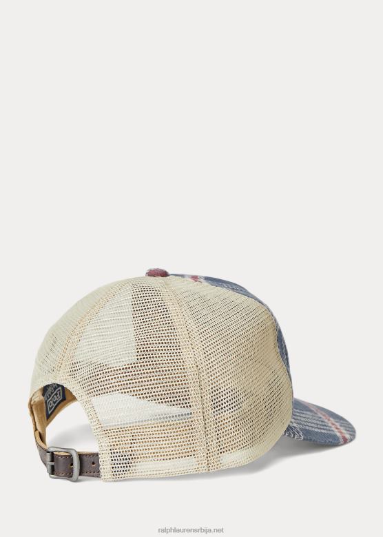 мушкарци Ralph Lauren везена карирана капа камионџија V2V442463 морнарско/бели мулти