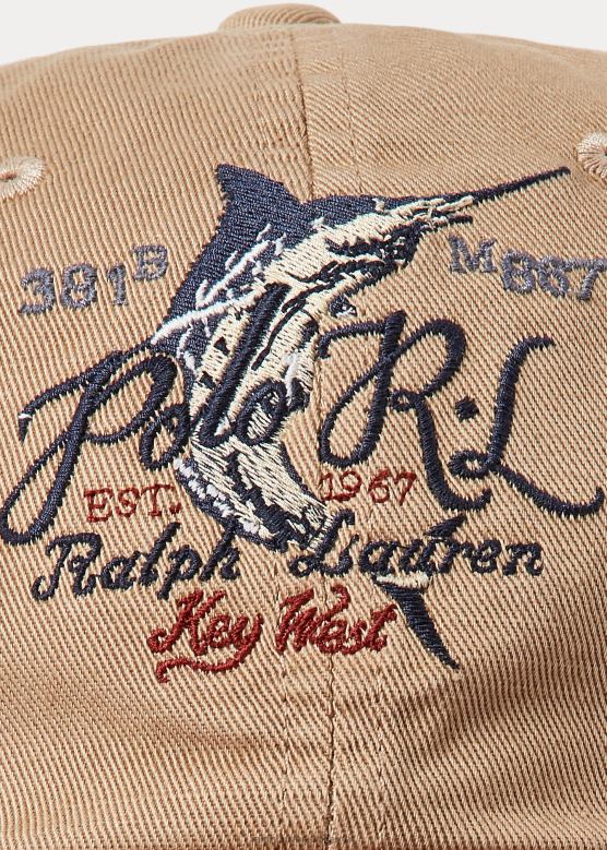 мушкарци Ralph Lauren кожна капа од кепера везена V2V442430 приморски беж
