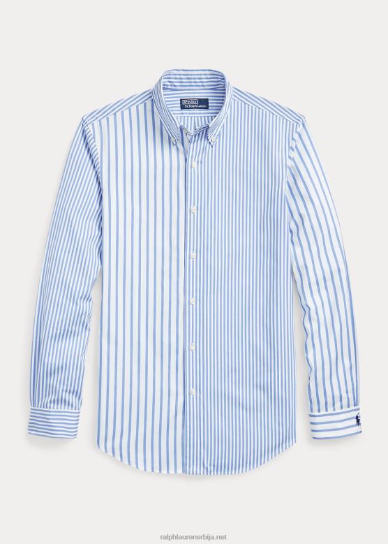 мушкарци Ralph Lauren забавна кошуља од поплина на пругама прилагођеног кроја V2V441098 плава забавна мајица