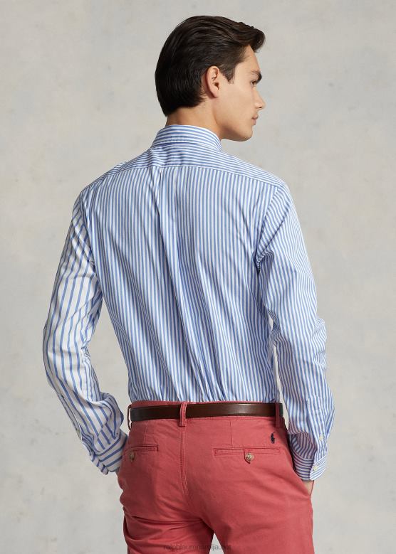 Početna| мушкарци| одећу| цасуал кошуље| мушкарци Ralph Lauren забавна кошуља од поплина на пругама прилагођеног кроја V2V441098 плава забавна мајица