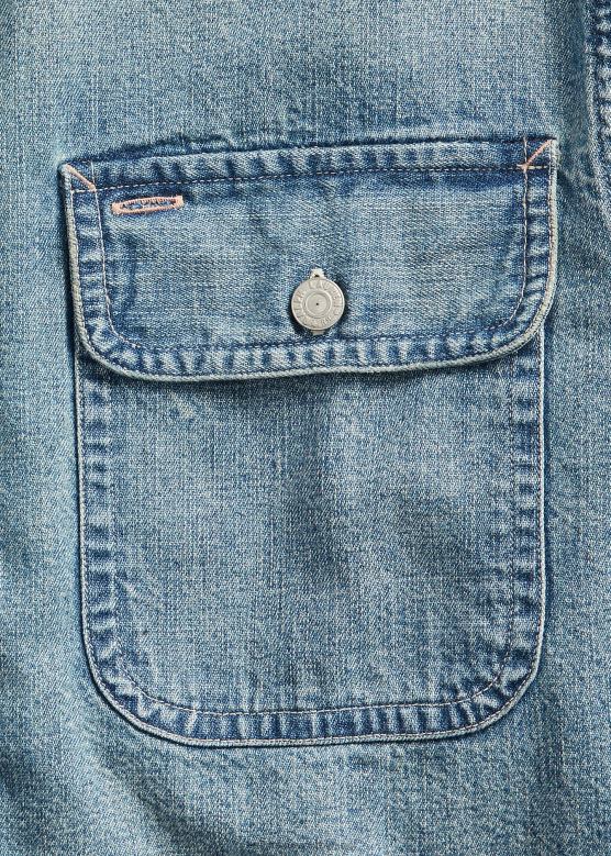 <п><п>радна мајица од лаганог јапанског тексаса. предива обојена правим индигом. средње плаво прање са омекшавањем руку. санфоризовано да би се смањило скупљање.<п>п>