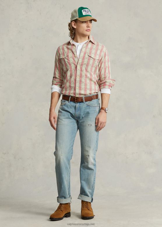 мушкарци Ralph Lauren карирана доби радна мајица класичног кроја V2V448443 црвени добби мулти