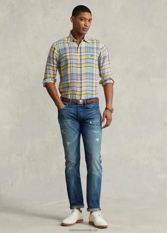 мушкарци Ralph Lauren карирана ланена кошуља класичног кроја V2V441142 жуто/зелено мулти