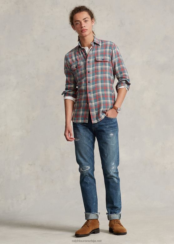 мушкарци Ralph Lauren карирана платнена радна кошуља класичног кроја V2V441149 зелено/бели мулт
