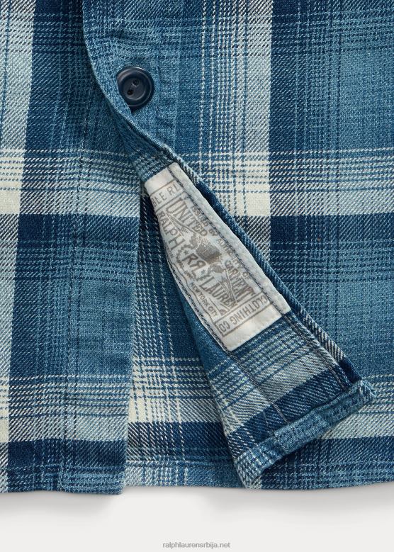 мушкарци Ralph Lauren карирана радна кошуља од кепера V2V441791 индиго/крем