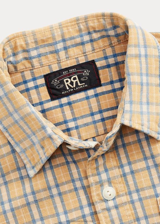 мушкарци Ralph Lauren карирана ткана радна кошуља V2V441736 тан/индиго