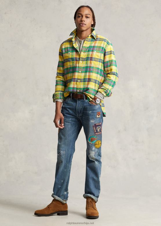 мушкарци Ralph Lauren карирана фланелска кошуља класичног кроја V2V448615 5882а жуто/зелено мулти
