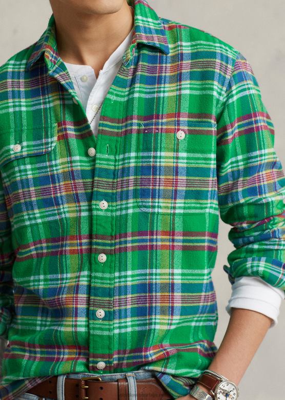 мушкарци Ralph Lauren карирана фланелска радна мајица класичног кроја V2V441064 зелено/жуто мулти