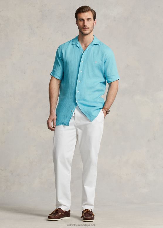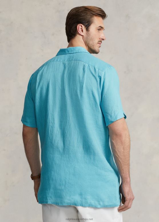 мушкарци Ralph Lauren ланена логорска кошуља V2V441496 савршена тиркизна