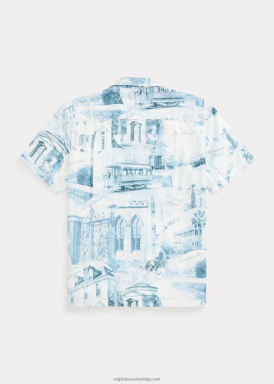 мушкарци Ralph Lauren ланено-памучна камп мајица са принтом разгледница V2V441762 крем/плава