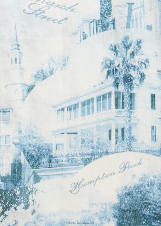 <п><п>направљен од мешавине лана и памука. тон плаве штампе има сликовит поглед на Јужну Каролину. два закрпа џепа на грудима. дугмад инспирисана старином.<п>п>