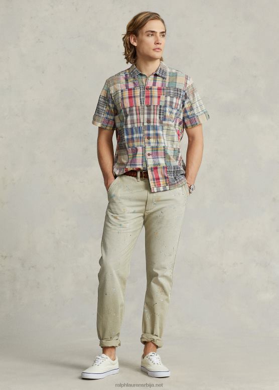 Početna| мушкарци| одећу| цасуал кошуље| мушкарци Ralph Lauren мадрас камп мајица класичног кроја V2V441070 кеи вест патцхворк