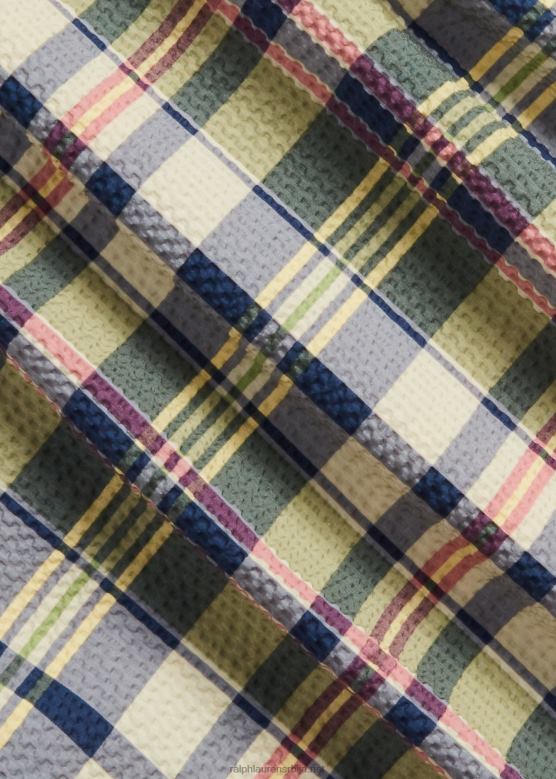 мушкарци Ralph Lauren мадрас принт сеерсуцкер камп мајица V2V441768 зелена/крем/мулти