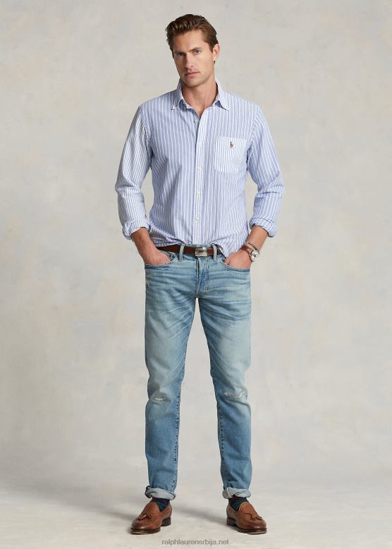 мушкарци Ralph Lauren Оксфорд забавна кошуља на пруге класичног кроја V2V44769 плава забавна мајица