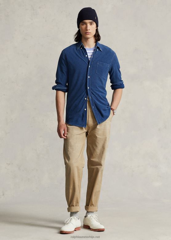 мушкарци Ralph Lauren плетена шамбре кошуља V2V44946 средњи индиго