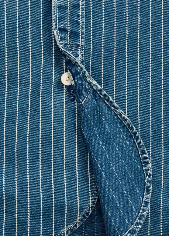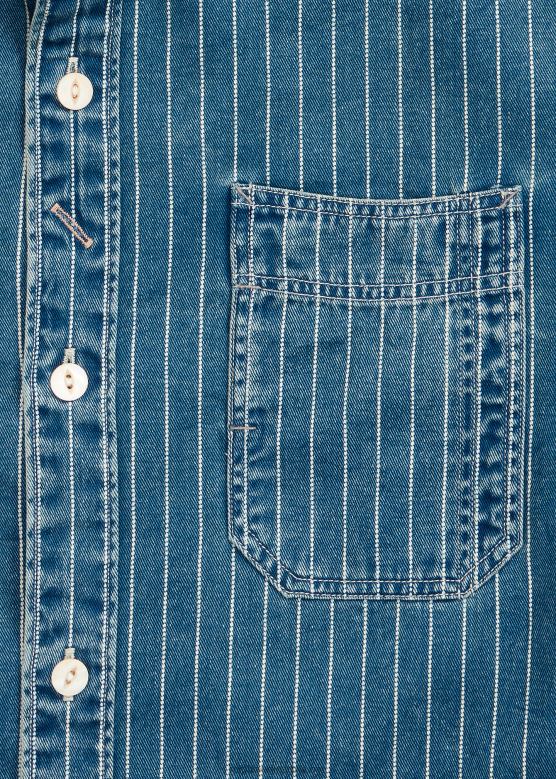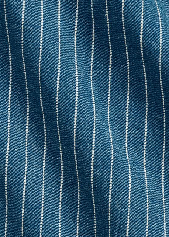 <п><п>од јапанског памучног кепера. обојена правим индигом и штампана тачкастим мотивом. трака оковратник. аутентична ланчано прошивена конструкција на бочним шавовима, која је заснована на радним кошуљама из 20-их и 30-их година. муслинска појачања у унутрашњости. у великој мери опран за дуготрајан изглед и осећај. дугмад за речне шкољке.<п>п>