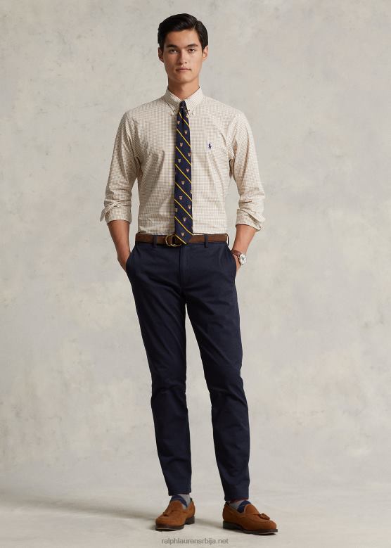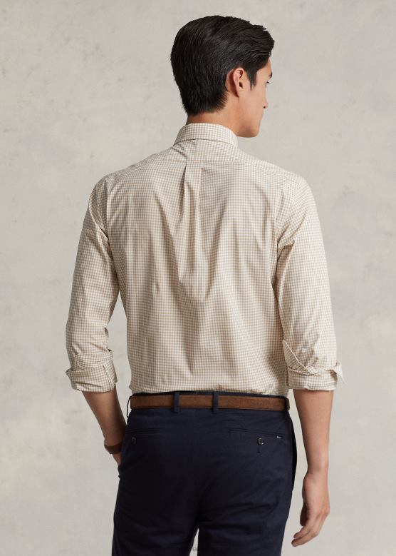 мушкарци Ralph Lauren слим фит кошуља од гингхам стретцх поплин V2V44814 винтаге каки/бела