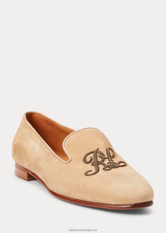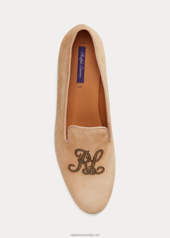 Жене Ralph Lauren алонзо везена папуча од козјег семиша V2V449683 бледи мед