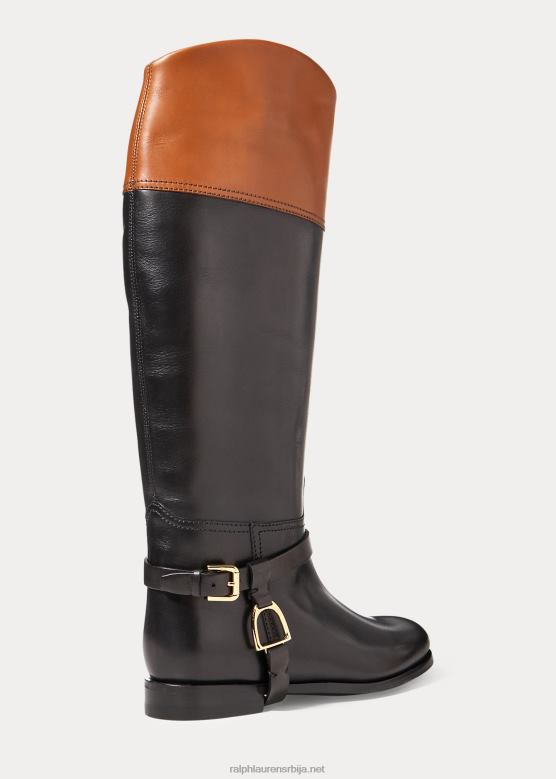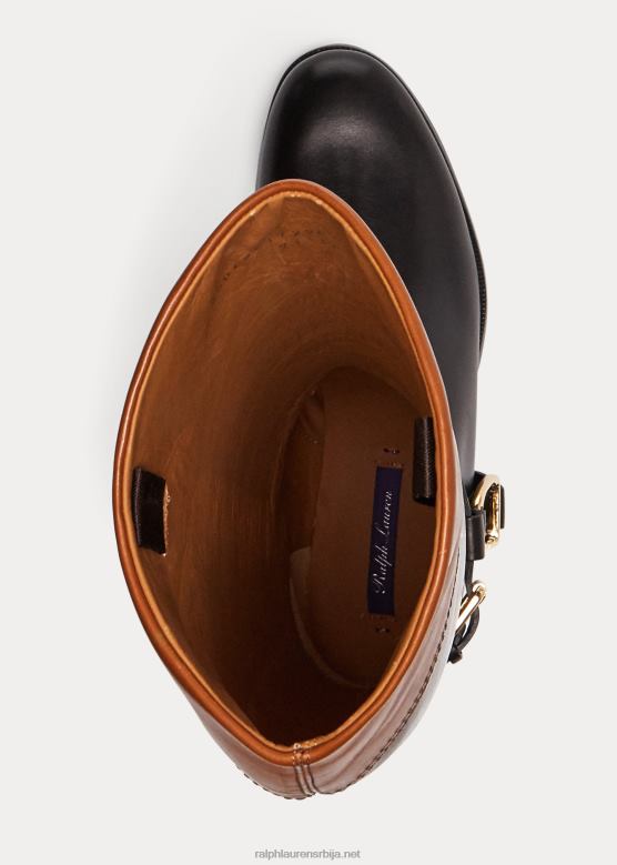 Жене Ralph Lauren саде чизма за јахање од углачане телеће коже V2V449707 црна/тан