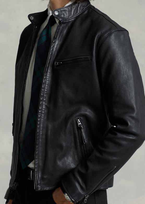 мушкарци Ralph Lauren кафе тркачка јакна од јагњеће коже V2V441140 црн