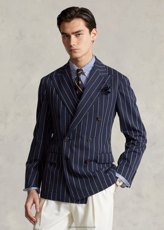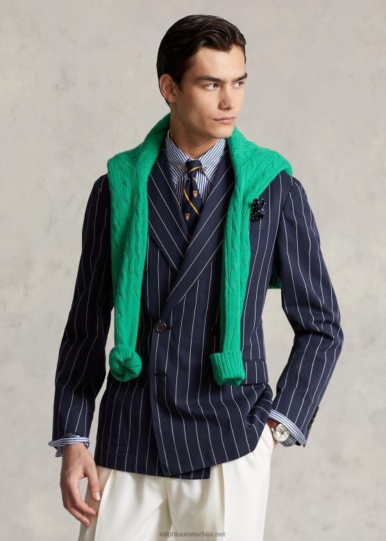<п><п>Поло мекани крој даје модеран стил класичном преппи стилу са природним раменом и конструкцијом од пола платна. део одела, овај сако са дуплим копчањем је скројен од лаганог пругастог кепера који је у Италији исткан од памука и лана.<п>п>