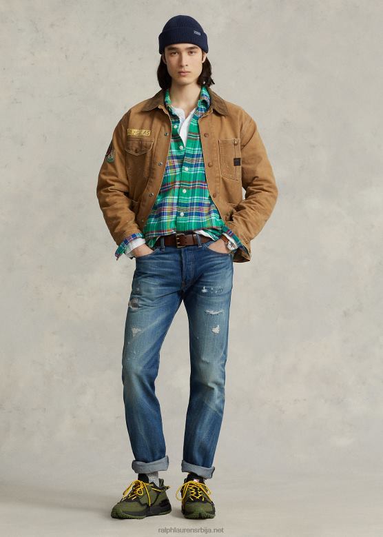 <п><п>ова јакна комбинује утилитарну силуету инспирисану винтиџом са издржљивим памучним платном и садржи више логотипа.<п>п>