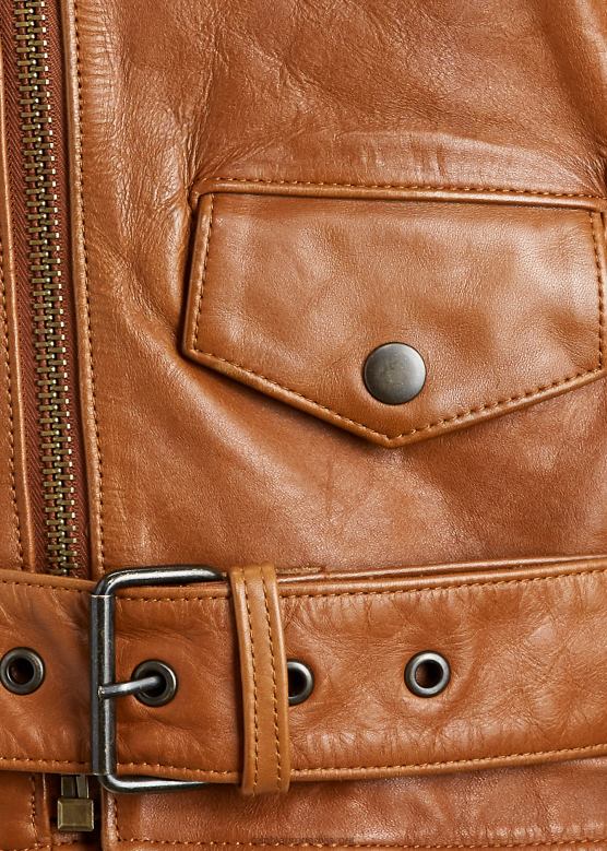 <п><п>Отеловљујући став центра града у срцу поло стила, ова мото јакна комбинује гипку овчију кожу од пуног зрна са старинским месинганим хардвером и каишем инспирисаним старином.<п>п>