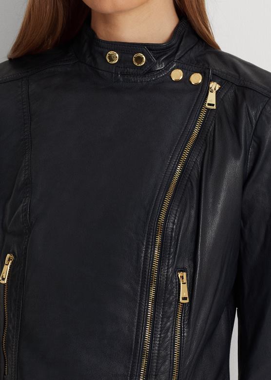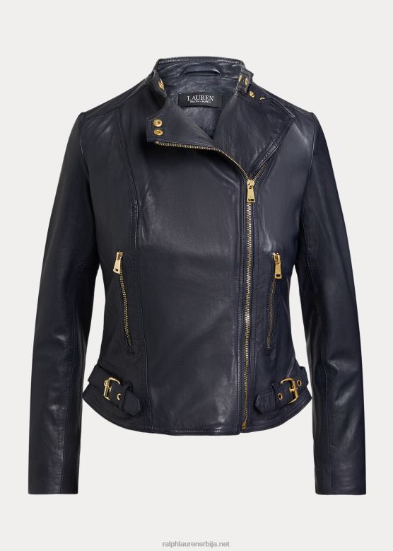 Жене Ralph Lauren пресвучена кожна мото јакна V2V449449 морнарица