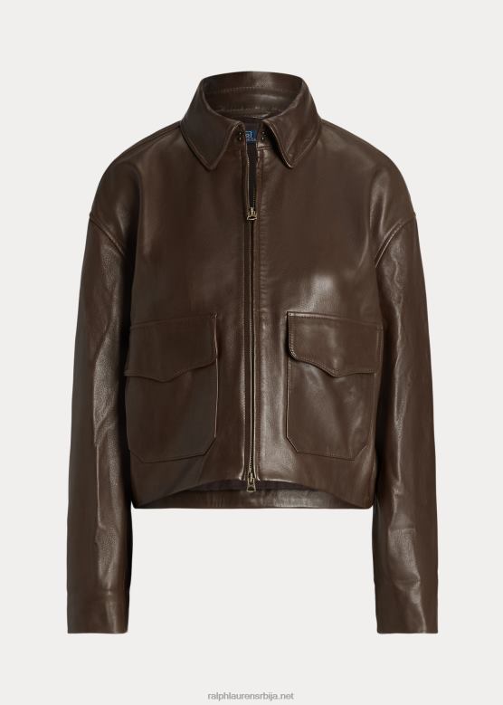 Жене Ralph Lauren скраћена кожна бомбер јакна V2V443221 браон